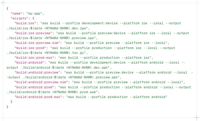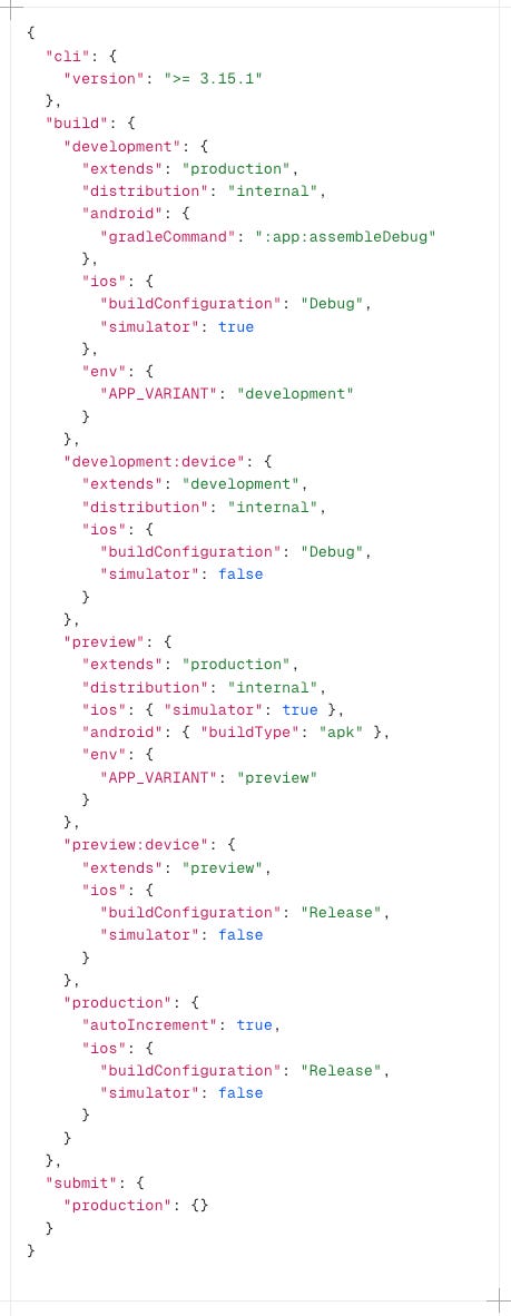 P.S: for reference, here’s my eas.json where I define the different build profiles.